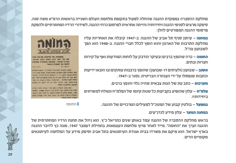 %u05de%u05d7%u05dc%u05e7%u05ea %u05d4%u05d4%u05e1%u05d1%u05e8%u05d4 %u05d1%u05de%u05e4%u05e7%u05d3%u05ea %u05d4%u05d4%u05d2%u05e0%u05d4 %u05e9%u05d4%u05d7%u05dc%u05d4 %u05dc%u05e4%u05e2%u05d5%u05dc %u05d1%u05ea%u05e7%u05d5%u05e4%u05ea %u05de%u05dc%u05d7%u05de%u05ea %u05d4%u05e2%u05d5%u05dc%u05dd %u05d4%u05e9%u05e0%u05d9%u05d9%u05d4 %u05d1%u05e8%u05d0%u05e9%u05d5%u05ea %u05d4%u05e8%u05de\%u05d0 %u05de%u05e9%u05d4 %u05e1%u05e0%u05d4, %u05e1%u05d9%u05e4%u05e7%u05d4 %u05de%u05e8%u05e6%u05d9%u05dd %u05dc%u05e1%u05e0%u05d9%u05e4%u05d9 %u05d4%u05d4%u05d2%u05e0%u05d4 %u05d5%u05d9%u05d7%u05d9%u05d3%u05d5%u05ea%u05d9%u05d4 %u05d5%u05d4%u05d9%u05d9%u05ea%u05d4 %u05d0%u05d7%u05e8%u05d0%u05d9%u05ea %u05dc%u05e4%u05e8%u05e1%u05d5%u05dd %u05db%u05e8%u05d5%u05d6%u05d9 %u05d4%u05d4%u05d2%u05e0%u05d4, %u05dc%u05e9%u05d9%u05d3%u05d5%u05e8%u05d9 %u05d4%u05e8%u05d3%u05d9%u05d5 %u05d4%u05de%u05d7%u05ea%u05e8%u05ea%u05d9%u05d9%u05dd %u05d5%u05dc%u05d4%u05e4%u05e7%u05ea %u05e4%u05e8%u05e1%u05d5%u05de%u05d9 %u05d4%u05d4%u05d2%u05e0%u05d4 %u05d4%u05de%u05e4%u05d5%u05e8%u05d8%u05d9%u05dd %u05dc%u05d4%u05dc%u05df: %u05d1%u05de%u05d7%u05e0%u05d4 %u2014 %u05e2%u05d9%u05ea%u05d5%u05df %u05e1%u05e0%u05d9%u05e3 %u05ea%u05dc %u05d0%u05d1%u05d9%u05d1 %u05e9%u05dc %u05d4%u05d4%u05d2%u05e0%u05d4. %u05d1-1947 %u05e7%u05d9%u05d1%u05dc%u05d4 %u05d0%u05ea %u05d4%u05d0%u05d7%u05e8%u05d9%u05d5%u05ea %u05e2%u05dc%u05d9%u05d5 %u05de%u05d7%u05dc%u05e7%u05ea %u05d4%u05ea%u05e8%u05d1%u05d5%u05ea %u05e9%u05dc %u05d4%u05d0%u05e8%u05d2%u05d5%u05df %u05d5%u05d4%u05d5%u05d0 %u05d4%u05d5%u05e4%u05e5 %u05dc%u05db%u05dc%u05dc %u05d7%u05d1%u05e8%u05d9 %u05d4%u05d4%u05d2%u05e0%u05d4. %u05d1-1948 %u05d4%u05d5%u05d0 %u05d4%u05e4%u05da %u05dc%u05e9%u05d1%u05d5%u05e2%u05d5%u05df %u05e6%u05d4\%u05dc.%u05d4%u05d7%u05d5%u05de%u05d4 %u2014 %u05db%u05e8%u05d5%u05d6 %u05e9%u05d4%u05d5%u05e4%u05e5 %u05d1%u05e8%u05d1%u05d9%u05dd %u05d5%u05d1%u05e2%u05d9%u05e7%u05e8 %u05d4%u05d5%u05d3%u05d1%u05e7 %u05e2%u05dc %u05dc%u05d5%u05d7%u05d5%u05ea %u05d4%u05de%u05d5%u05d3%u05e2%u05d5%u05ea %u05d5%u05d0%u05e3 %u05e2%u05dc %u05e7%u05d9%u05e8%u05d5%u05ea %u05d7%u05e6%u05e8%u05d5%u05ea %u05d5%u05d1%u05ea%u05d9%u05dd.%u05d0%u05e9%u05e0%u05d1 %u2014 %u05e9%u05d1%u05d5%u05e2%u05d5%u05df )%u05d5%u05dc%u05e2%u05d9%u05ea%u05d9%u05dd %u05d3%u05d5-%u05e9%u05d1%u05d5%u05e2%u05d5%u05df( %u05e9%u05d4%u05d5%u05e4%u05e5 %u05d1%u05e8%u05d1%u05d1%u05d5%u05ea %u05e2%u05d5%u05ea%u05e7%u05d9%u05dd %u05d5%u05d1%u05d5 %u05d4%u05d5%u05d1%u05d0%u05d5 %u05d9%u05d3%u05d9%u05e2%u05d5%u05ea %u05d5%u05db%u05ea%u05d1%u05d5%u05ea %u05e9%u05e0%u05e4%u05e1%u05dc%u05d5 %u05e2%u05dc %u05d9%u05d3%u05d9 %u05d4%u05e6%u05e0%u05d6%u05d5%u05e8%u05d4 %u05d4%u05d1%u05e8%u05d9%u05d8%u05d9%u05ea. %u05e0%u05e1%u05d2%u05e8 %u05d1-1947.%u05de%u05e2%u05e8%u05db%u05d5%u05ea %u2014 %u05db%u05ea%u05d1 %u05e2%u05ea %u05e9%u05dc %u05d4%u05d2%u05d5%u05ea %u05e6%u05d1%u05d0%u05d9%u05ea %u05e9%u05d4%u05d9%u05d4 %u05d2%u05dc%u05d5%u05d9 %u05d5%u05d4%u05d5%u05e4%u05e5 %u05d1%u05e8%u05d1%u05d9%u05dd.%u05e4%u05dc%u05de\%u05d7 %u2014 %u05e2%u05dc%u05d5%u05df %u05e9%u05d4%u05d5%u05e4%u05d9%u05e2 %u05d1%u05e7%u05d1%u05d9%u05e2%u05d5%u05ea %u05db%u05dc %u05e9%u05e0%u05d5%u05ea %u05e7%u05d9%u05d5%u05de%u05d5 %u05e9%u05dc %u05d4%u05e4%u05dc%u05de\ %u05d5%u05e0%u05e9%u05dc%u05d7 %u05dc%u05de%u05e9%u05e8%u05ea%u05d9%u05dd %u05d1%u05d9%u05d7%u05d9%u05d3%u05d5%u05ea%u05d9%u05d5.%u05d1%u05de%u05e4%u05e2%u05dc %u2014 %u05d1%u05d5%u05dc%u05d8%u05d9%u05df %u05e7%u05d1%u05d5%u05e2 %u05e9%u05dc %u05d4%u05de%u05d8%u05db\ %u05dc%u05e4%u05e2%u05d9%u05dc%u05d9%u05dd %u05d4%u05de%u05e8%u05db%u05d6%u05d9%u05d9%u05dd %u05e9%u05dc %u05d4%u05d4%u05d2%u05e0%u05d4.%u05d1%u05de%u05d7%u05e0%u05d4 %u05d4%u05e0%u05d5%u05e2%u05e8 %u2014 %u05e2%u05dc%u05d5%u05df %u05de%u05d9%u05d3%u05e2 %u05dc%u05d2%u05d3%u05e0\%u05d9%u05dd.%u05d1%u05e8%u05d0%u05e9 %u05de%u05d7%u05dc%u05e7%u05ea %u05d4%u05d4%u05e1%u05d1%u05e8%u05d4 %u05e9%u05dc %u05d4%u05d4%u05d2%u05e0%u05d4 %u05e2%u05de%u05d3 %u05d1%u05d0%u05d5%u05ea%u05df %u05e9%u05e0%u05d9%u05dd %u05db%u05ea%u05e8%u05d9%u05d0%u05dc %u05db\%u05e5. %u05d4%u05d5%u05d0 %u05e0%u05d9%u05d4%u05dc %u05d0%u05ea %u05ea%u05d7%u05e0%u05ea %u05d4%u05e8%u05d3%u05d9%u05d5 %u05d4%u05de%u05d7%u05ea%u05e8%u05ea%u05d9%u05ea %u05e9%u05dc %u05d4%u05d4%u05d2%u05e0%u05d4 %u05d5%u05e2%u05e8%u05da %u05d0%u05ea \%u05d4%u05d7%u05d5%u05de%u05d4\. %u05de%u05d9%u05d9%u05d3 %u05dc%u05d0%u05d7%u05e8 %u05e4%u05e8%u05d5%u05e5 %u05de%u05dc%u05d7%u05de%u05ea %u05d4%u05e2%u05e6%u05de%u05d0%u05d5%u05ea, %u05d1%u05ea%u05d7%u05d9%u05dc%u05ea %u05d3%u05e6%u05de%u05d1%u05e8 1947 ,%u05de%u05d5%u05e0%u05d4 %u05db%u05e5 %u05dc%u05d3%u05d5%u05d1%u05e8 %u05d4%u05d4%u05d2%u05e0%u05d4 %u05d1%u05d0%u05e8%u05e5 %u05d9%u05e9%u05e8%u05d0%u05dc. %u05d4%u05d5%u05d0 %u05de%u05d9%u05e7%u05dd %u05d0%u05ea %u05de%u05e9%u05e8%u05d3%u05d5 %u05d1%u05d1%u05d9%u05ea %u05d0%u05d2%u05d5%u05d3%u05ea %u05d4%u05e2%u05d9%u05ea%u05d5%u05e0%u05d0%u05d9%u05dd %u05d1%u05ea%u05dc %u05d0%u05d1%u05d9%u05d1 %u05d5%u05e1%u05d9%u05e4%u05e7 %u05de%u05d9%u05d3%u05e2 %u05e2%u05dc %u05d4%u05de%u05dc%u05d7%u05de%u05d4 %u05dc%u05e2%u05d9%u05ea%u05d5%u05e0%u05d0%u05d9%u05dd %u05de%u05e7%u05d5%u05de%u05d9%u05d9%u05dd %u05d5%u05d6%u05e8%u05d9%u05dd.%u05d4%u05d7%u05d5%u05de%u05d4 29